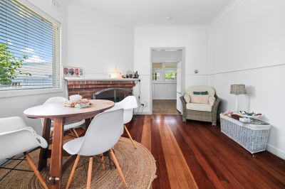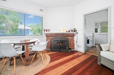 Step inside to find beautiful polished floorboards throughout, adding warmth and character, while the spacious main living area is kept comfortable year-round with air conditioning and a ceiling fan. A separate dining room with an original fireplace provides a charming space for family meals and entertaining.