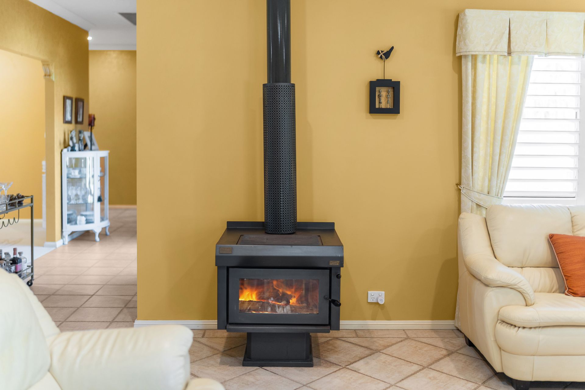 Built in 2000 and spanning a generous 376sqm, the home pairs space and serenity with modern comfort and country warmth. Four spacious bedrooms, two bathrooms, and multiple living and dining zones offer flexibility for families. The main bedroom, complete with ensuite and walk-in robe, enjoys its own wing alongside an office creating a peaceful retreat that's beautifully separated from the remaining accommodation for extra privacy and quiet. Spacious and practical kitchen boasting ample storage with sleek white cabinetry, modern stainless-steel appliances, and a central island bench perfect for meal prep or entertaining. The large window allows for plenty of natural light, complemented by warm tones and tiled flooring for a welcoming, functional design. Corner baths in main bathroom and ensuite, ducted air-conditioning, a cosy fireplace, ceiling fans throughout whole home and a full security system with front gate sensor ensure comfort and peace of mind.