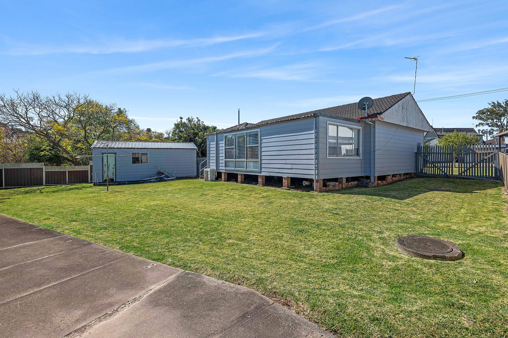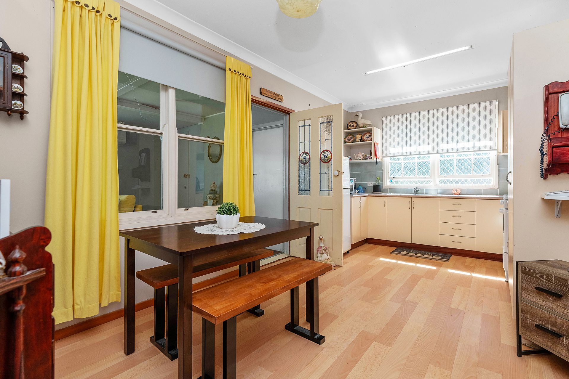 Accommodation includes three bedrooms, two with built-in robes and ceiling fans, serviced by the original bathroom with separate shower, bath and toilet – an area ripe for renovation.