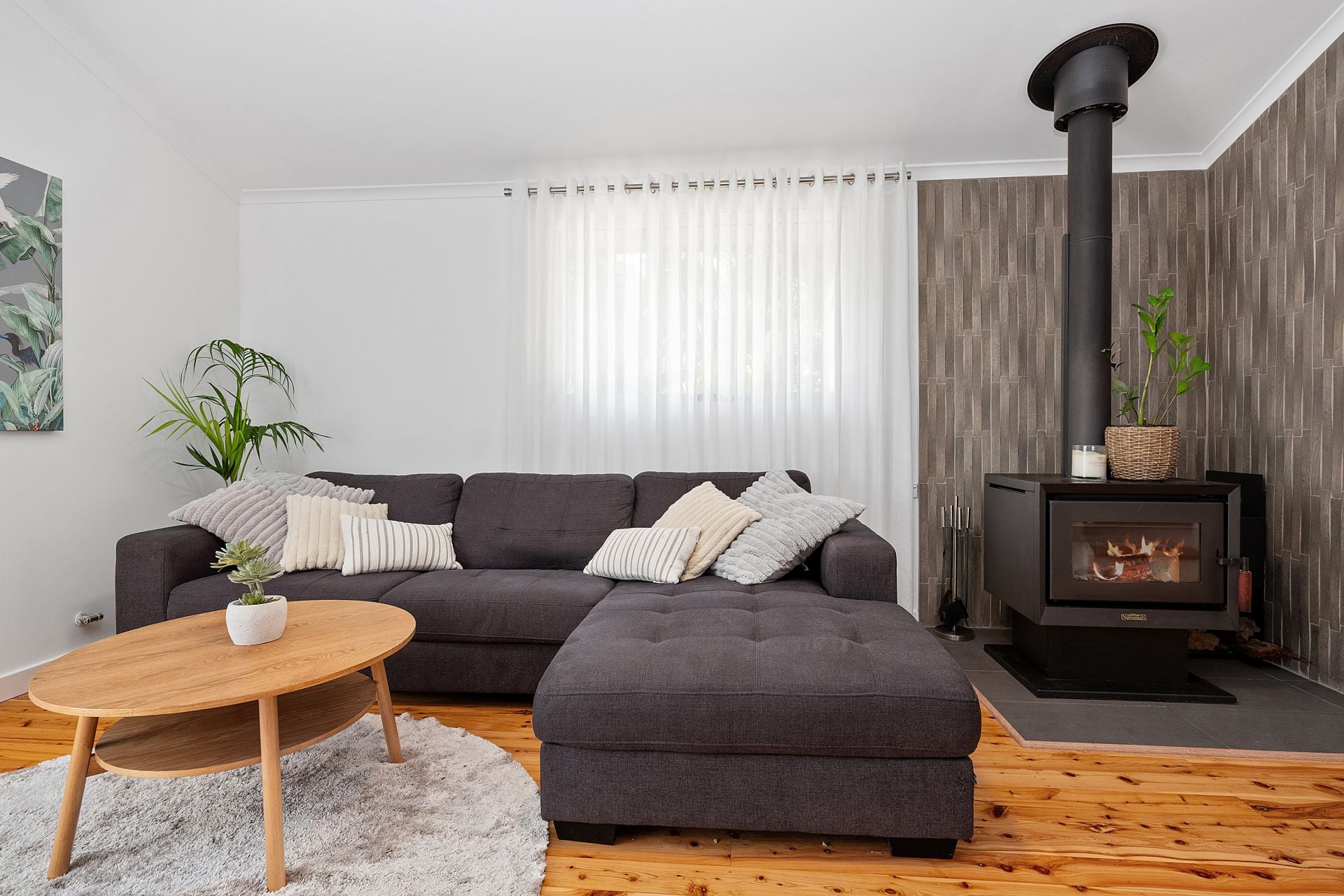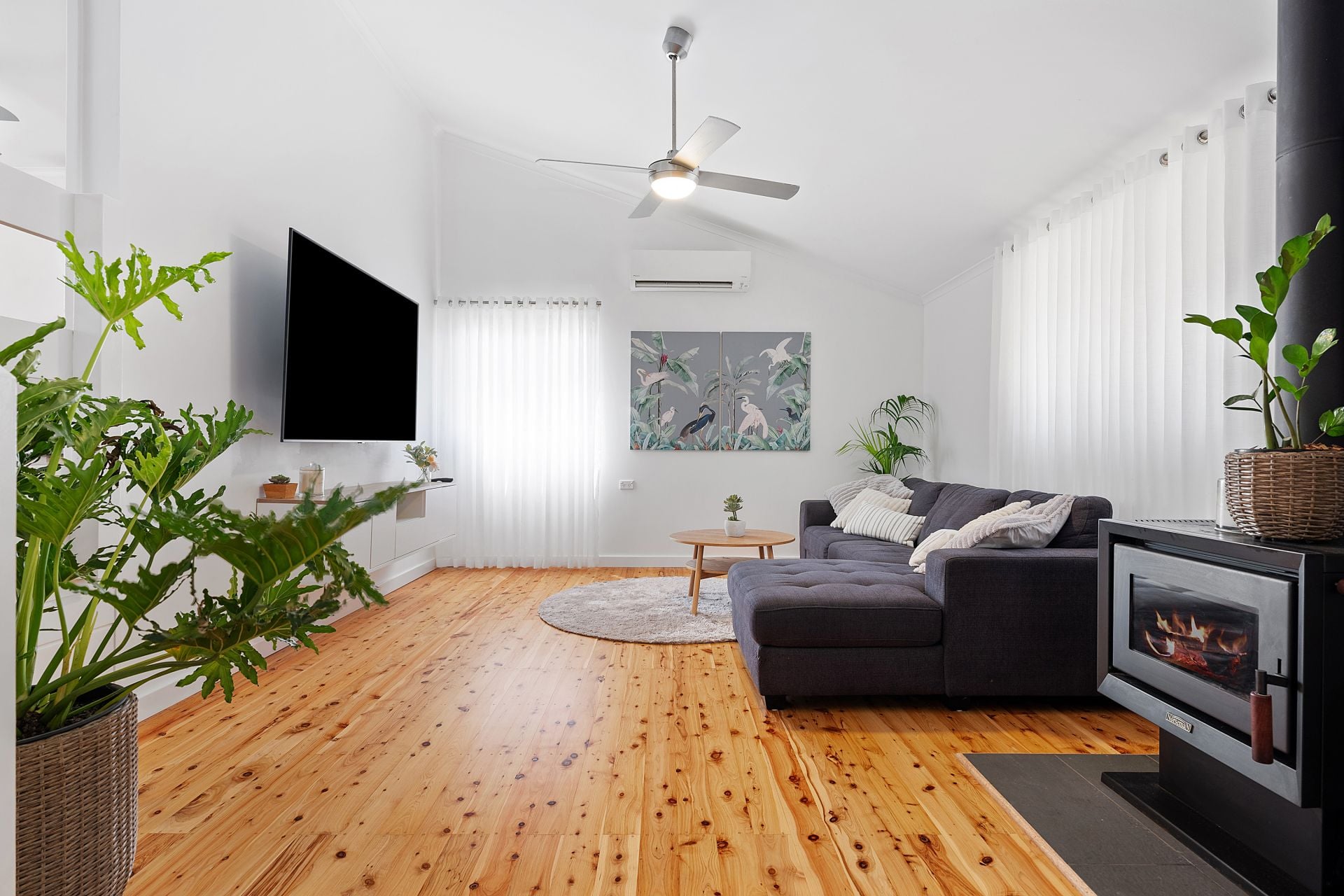 • Stylish living spaces - Enjoy the warmth of polished cypress pine floorboards throughout, a cozy lounge with reverse cycle air conditioning, and a slow combustion fireplace for those cooler nights.