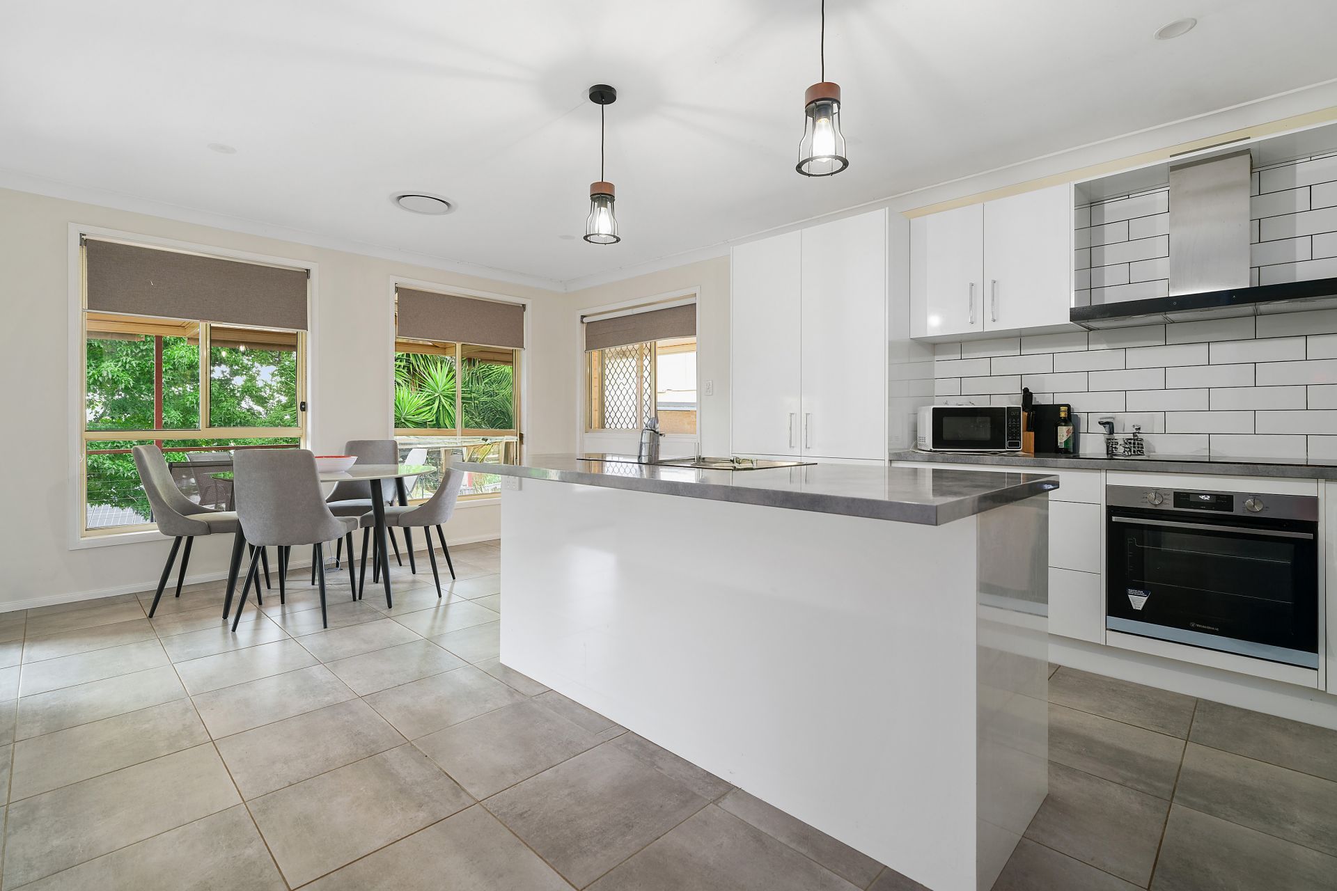 - Modern updated kitchen with island bench, oversized cooktop, dishwasher, new splashback and ample cupboard storage