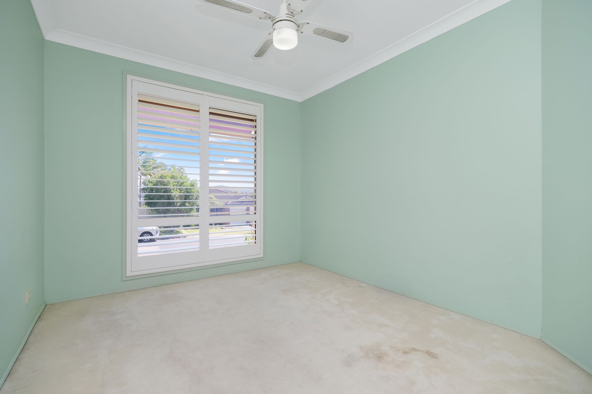 Accommodation includes four well-sized bedrooms, all fitted with ceiling fans, and three with built-in wardrobes. The master bedroom features its own ensuite, while the remaining bedrooms are serviced by a main bathroom complete with both shower and bathtub. Plantation shutters throughout the home add a touch of style and privacy.