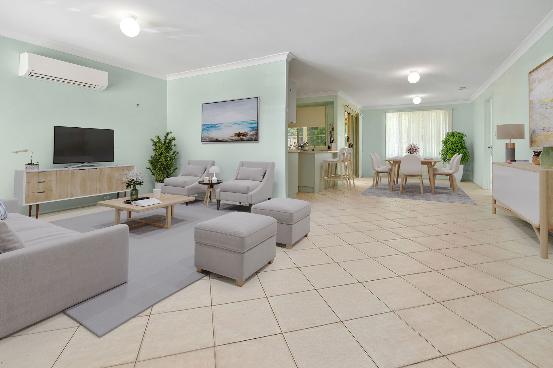 - Open-plan living with air conditioning