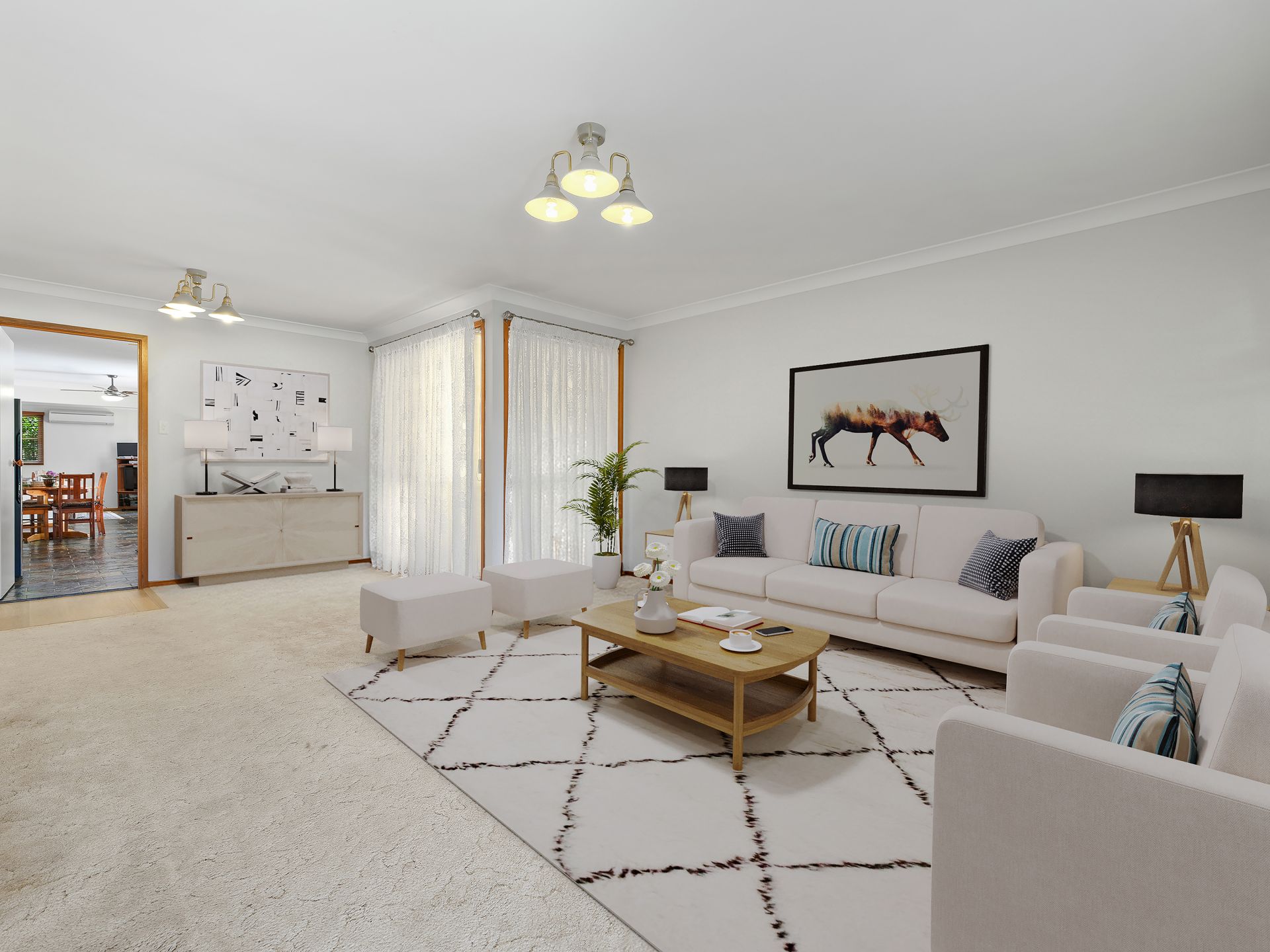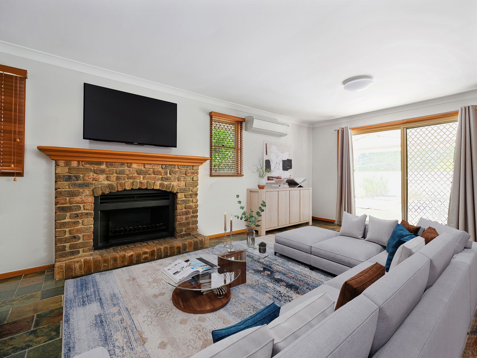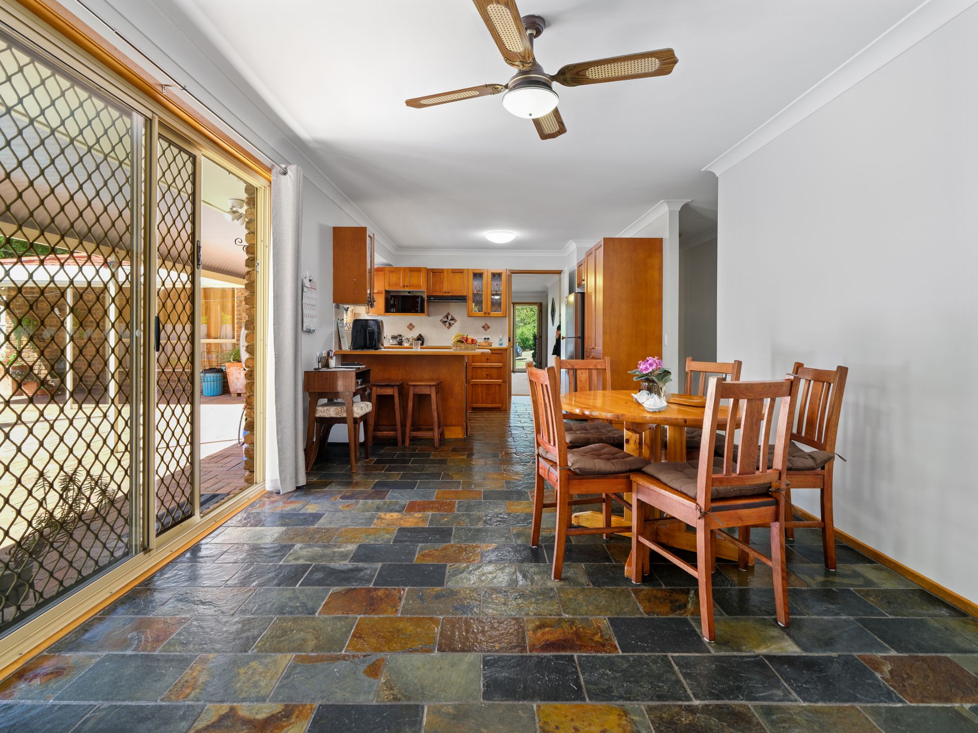 - Large L-shaped living and dining area with slate flooring, air-conditioning and seamless flow to the rear entertaining area