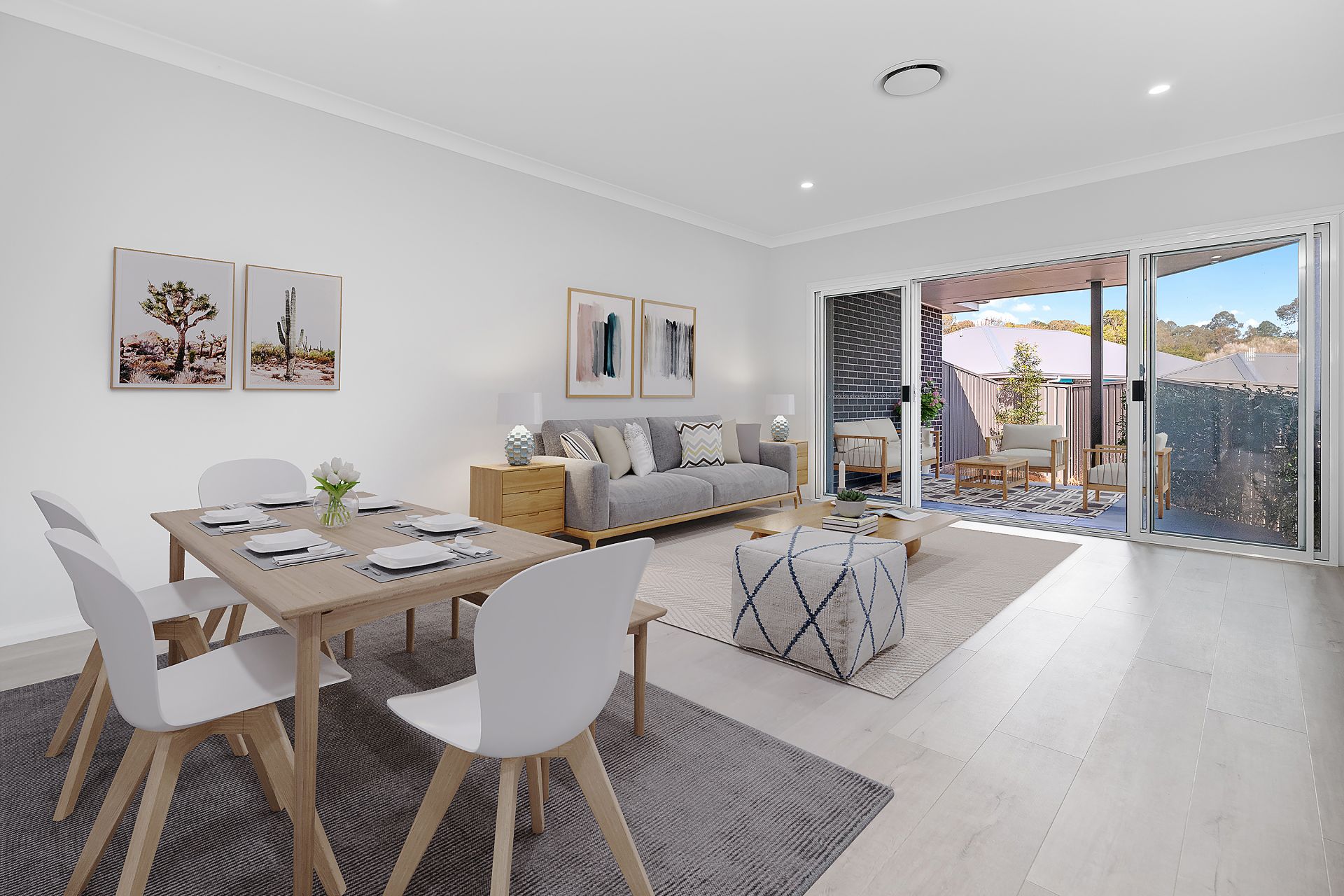 * Open plan living with hybrid flooring