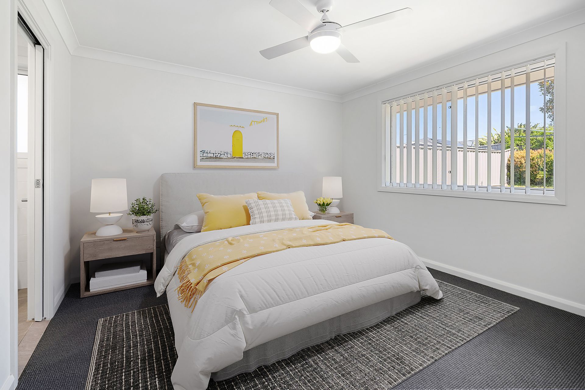 - Three generous bedrooms – all carpeted with ceiling fans and mirrored built-ins. The master suite boasts a walk-in robe and private ensuite.